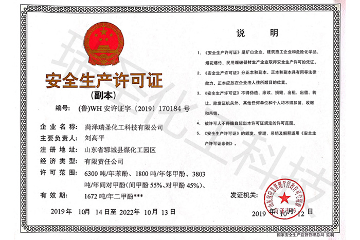 瑞圣化工資質(zhì)證書展示